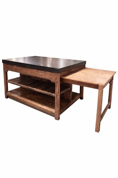 ZRT-2453 Keuken-eiland met marmeren blad en uittrekblad om aan te zitten